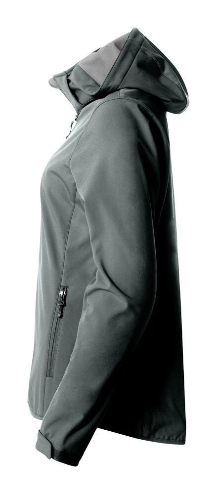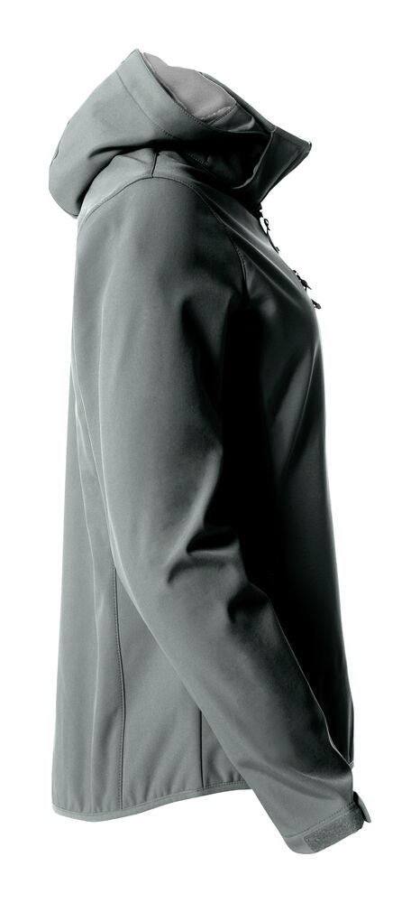 En softshelljacka med avtagbar huva, 3 ytterfickor och 2 innerfickor. Ton-i-ton dragkedjor, elastiskt band i nerderkant. I ärmslut har vi adderat justerbar slejf med velcro.